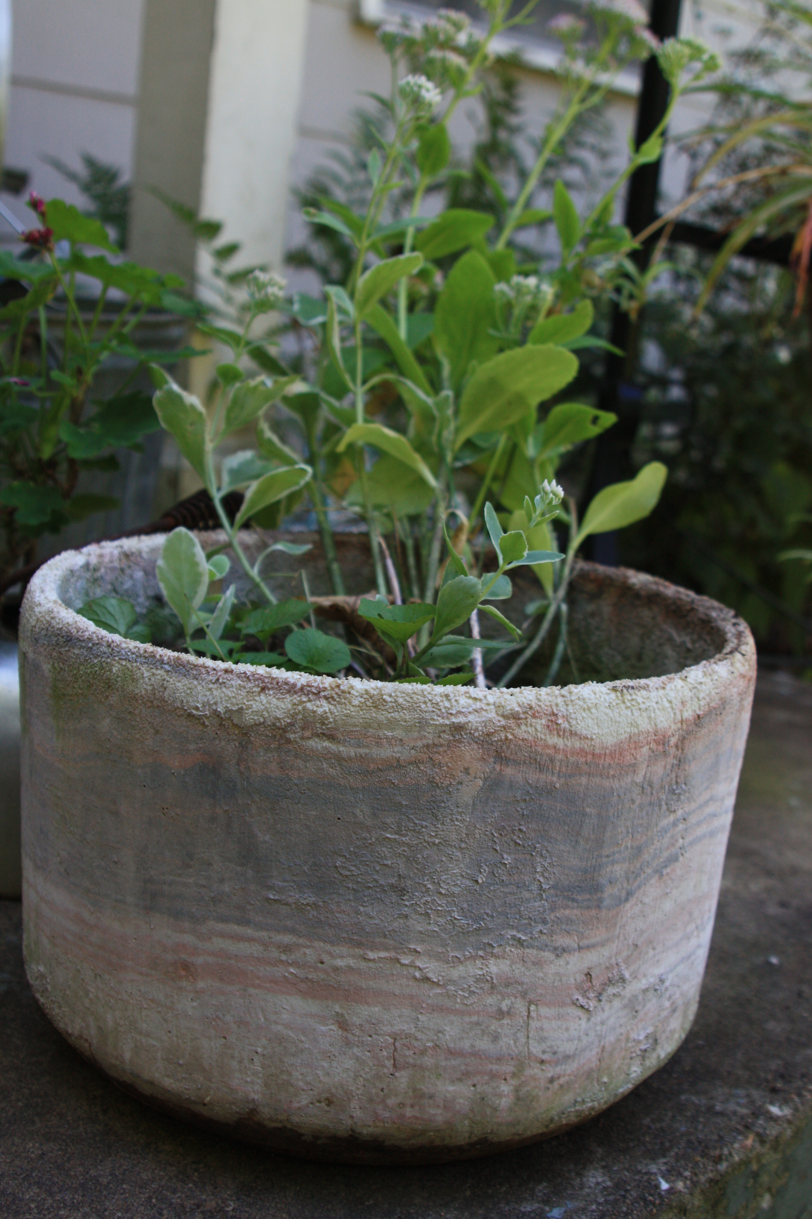 I unloaded the pot from the car to my front porch.  I stuck a few stems in the ground near the sedum Julie gave me earlier in the year, but left most of it in the pot, on the porch, where it seems to belong.IMG_4986