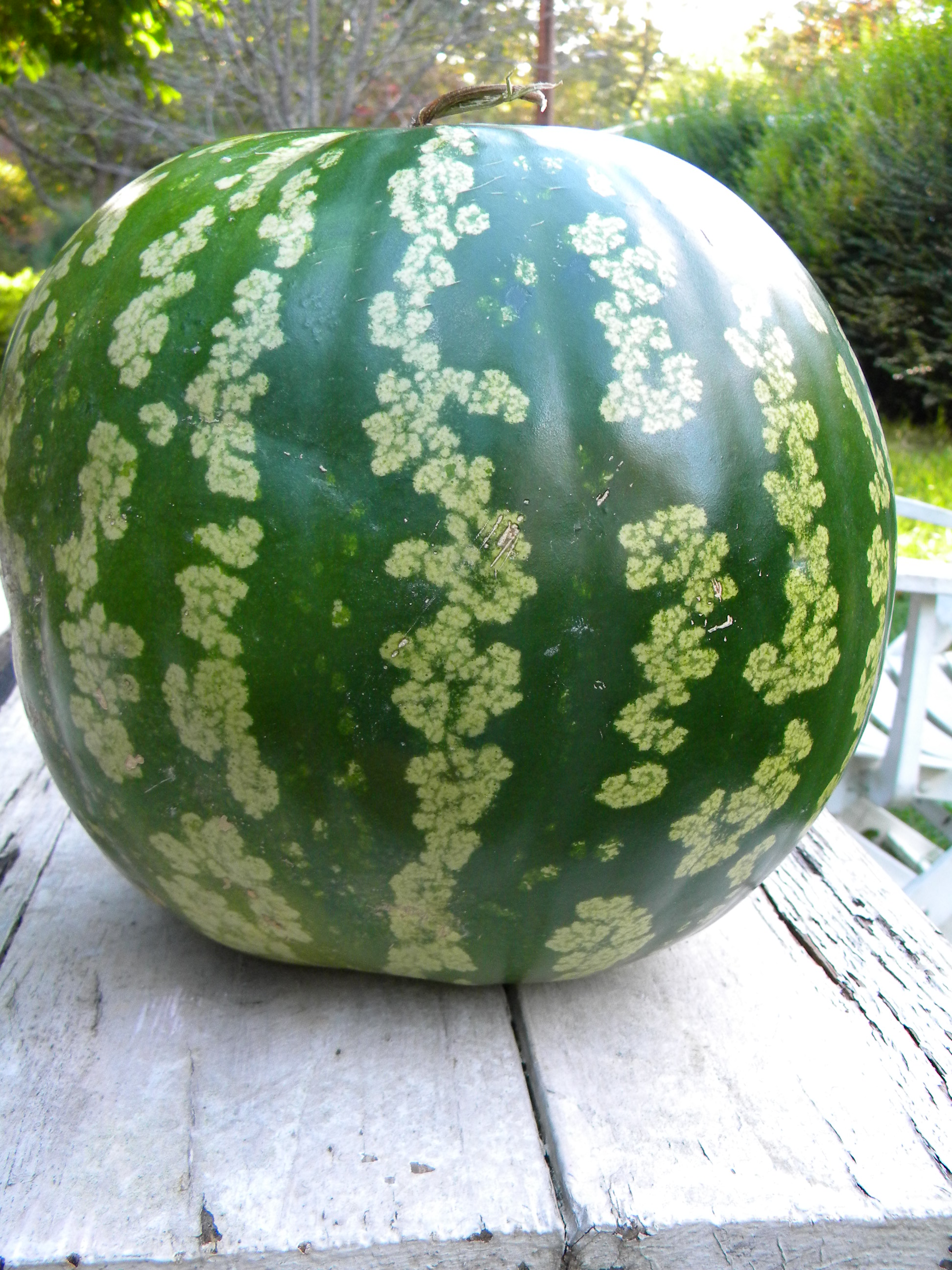 Among the plethora of squash, was this particular item billed as ‘perfect for watermelon rind pickles’. Because I have a little bit of a reputation as a pickler, they immediately thought I needed it. I finally got around to slicing into it this morning.