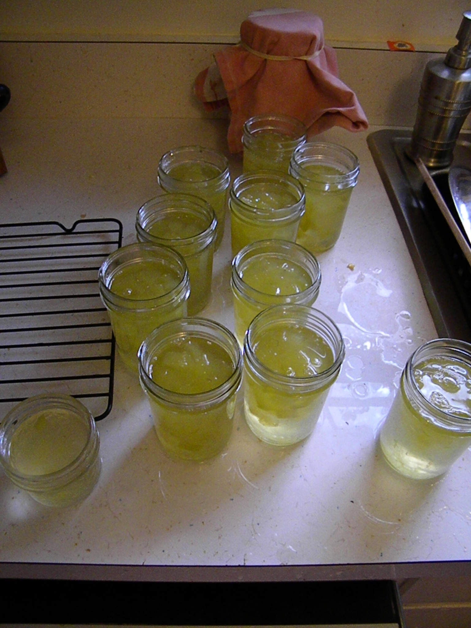 I did my classic, turn off the stove, walk away and paid attention to something else in the meantime rather than face my own pickle failure. And there was plenty of something else to pay attention to – I had a batch of citron jam simmering away on another burner and I was still chopping the remainder of the melon, which was scattered about the kitchen and dining room in two quart portions in various bowls and containers because every recipe I found seemed to use the melon in two quart portions.