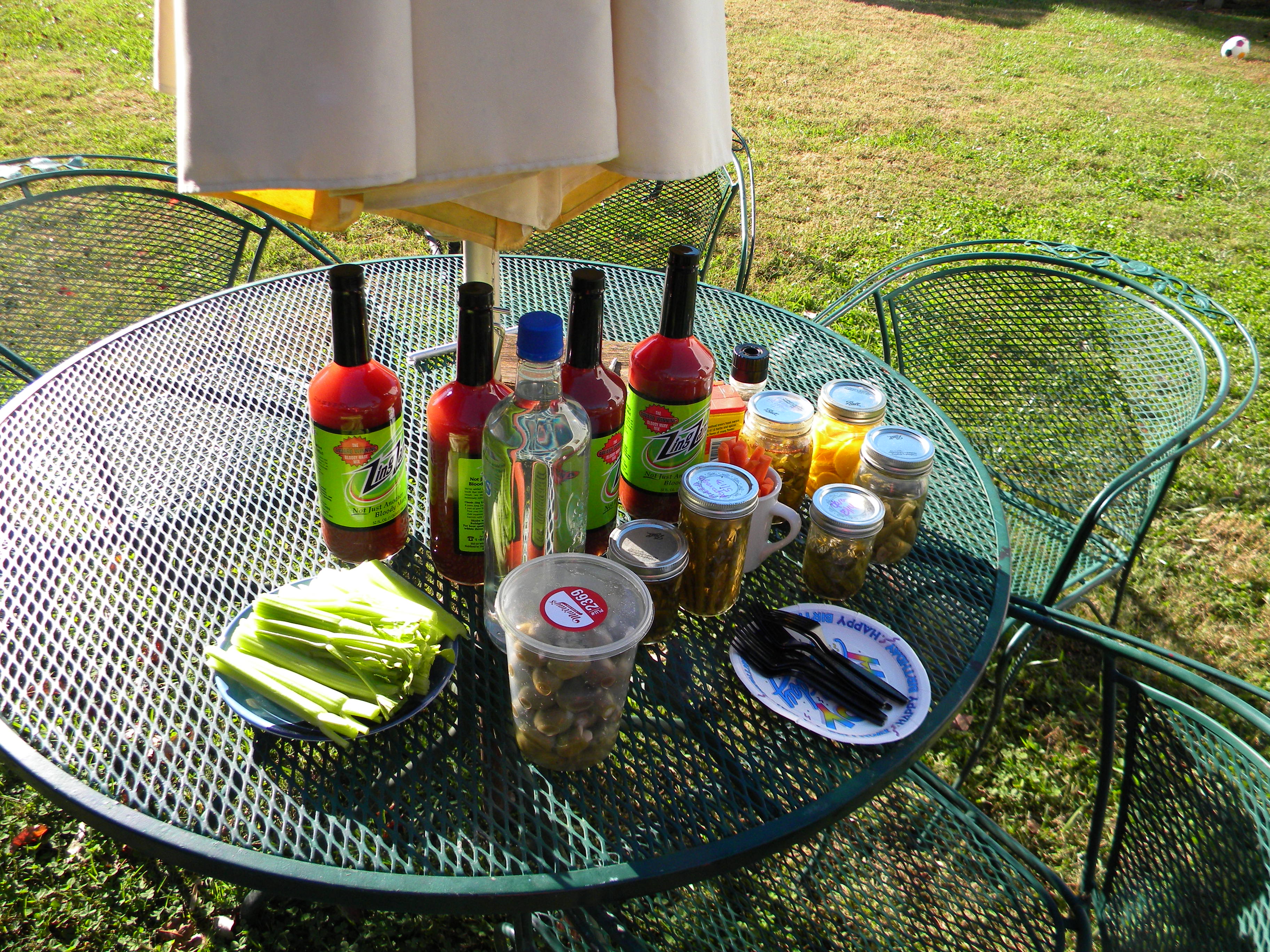 DSCN6932 Previous Next Published November 10, 2014 at 3648 × 2736 in The Best Weekend of the Year. The Bloody Mary Table with it’s vast array of pickles.