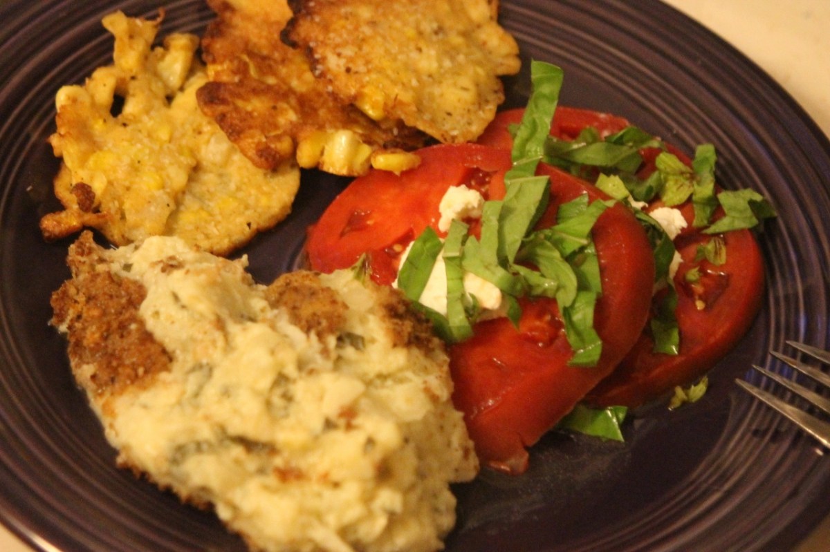 IMG_5699 (1280×853) Previous Next Published August 20, 2015 at 1280 × 853 in Squashapooloza Dinner! Squash casserole, corn fritters and sliced tomatoes with basil and Caromount Farm’s goat cheese