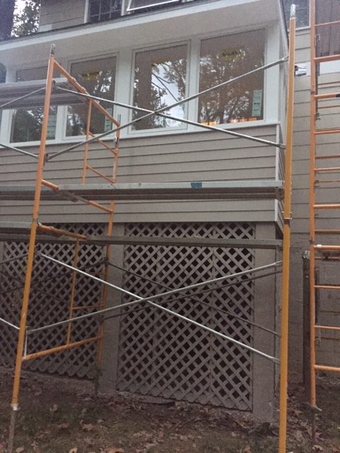 When I use the term ‘scope creep’ I get a lot of ‘what is that?’ Scope creep is when the project slowly creeps beyond it’s original scope of work. For instance, while the crew was here replacing all the trim on the side of the house by the back door, they looked up and realized mere inches away was some rotted wood trim they thought should be replaced while they were up there. It was the exterior of the kitchen exhaust fan that hasn’t worked in 20 years, so why just fix the trim when you can fix the entire fan? Or install a new one as it turns out, disrupting the kitchen…. And while they were at it, we went ahead and got all the rotted exterior trim replaced as well as all the missing shingles. Scope Creep. And then, since we had painters coming, might as well get a few rooms painted that have been on the to do list for some time that we just never get around to doing. So, the entire first floor of the house was totally catawampus with scope creep. And since the back porch looks so good and we got all the trim replaced, let’s just paint the entire exterior. Major Scope Creep. Which in the end, is totally worth it because the entire house is gonna look fantastic.