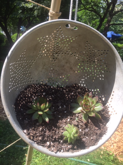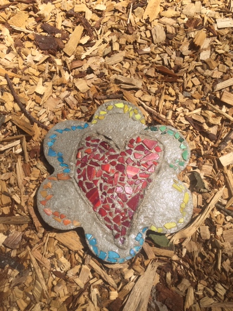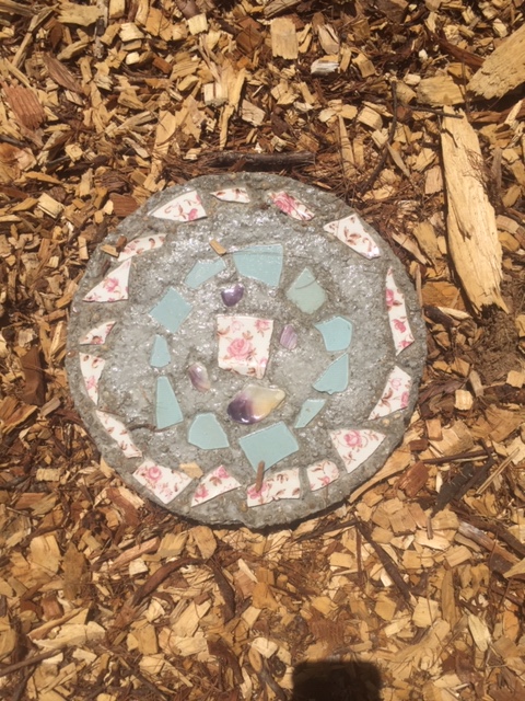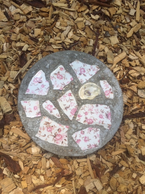 Pat and Edie have been making stepping stones for the pathways and with the mulch in place, I can finally fulfill my vision of having a container herb garden scattered among the beds without having to move a billion things so the paths can get mowed. It feels like a whole new garden.