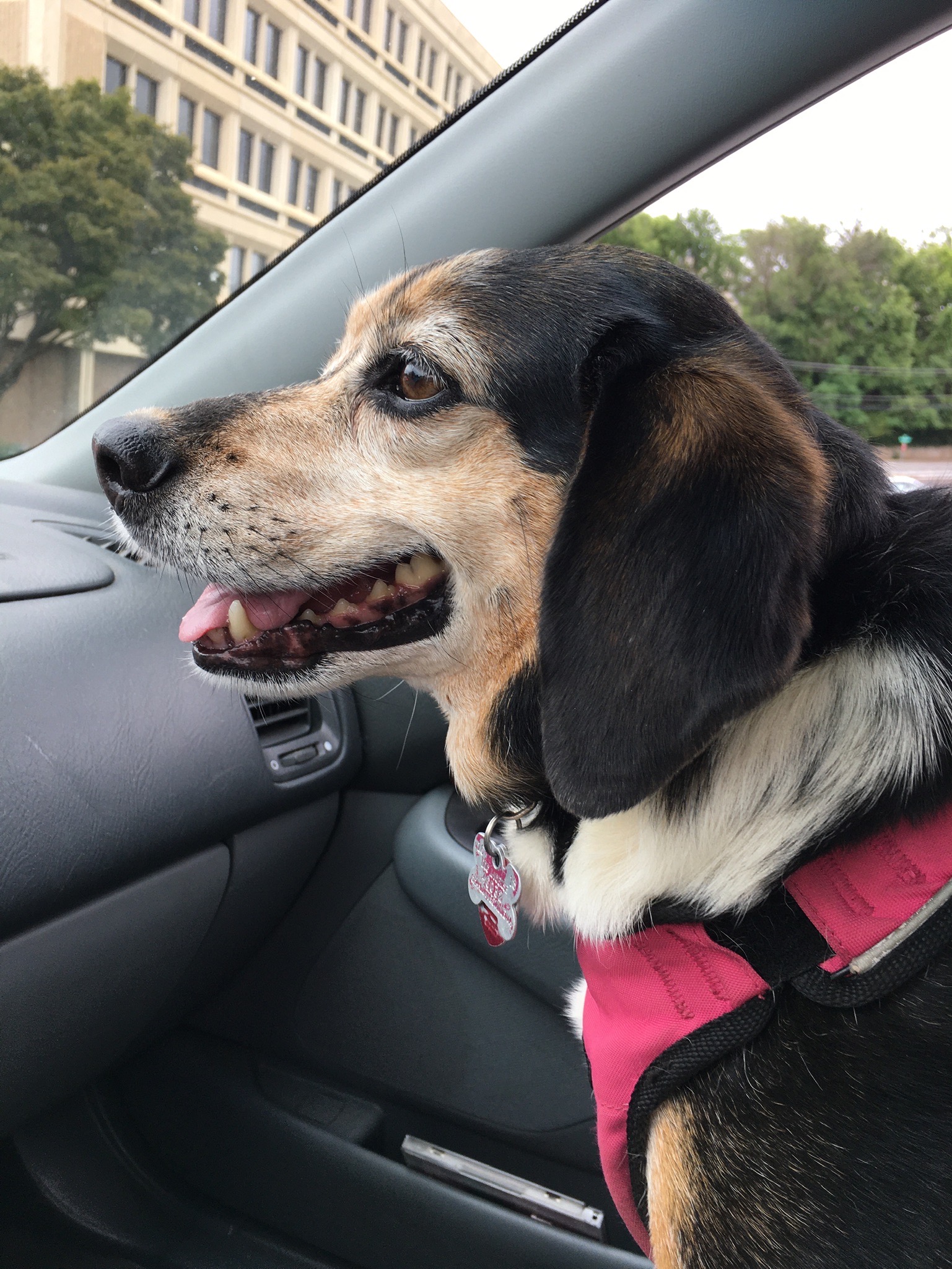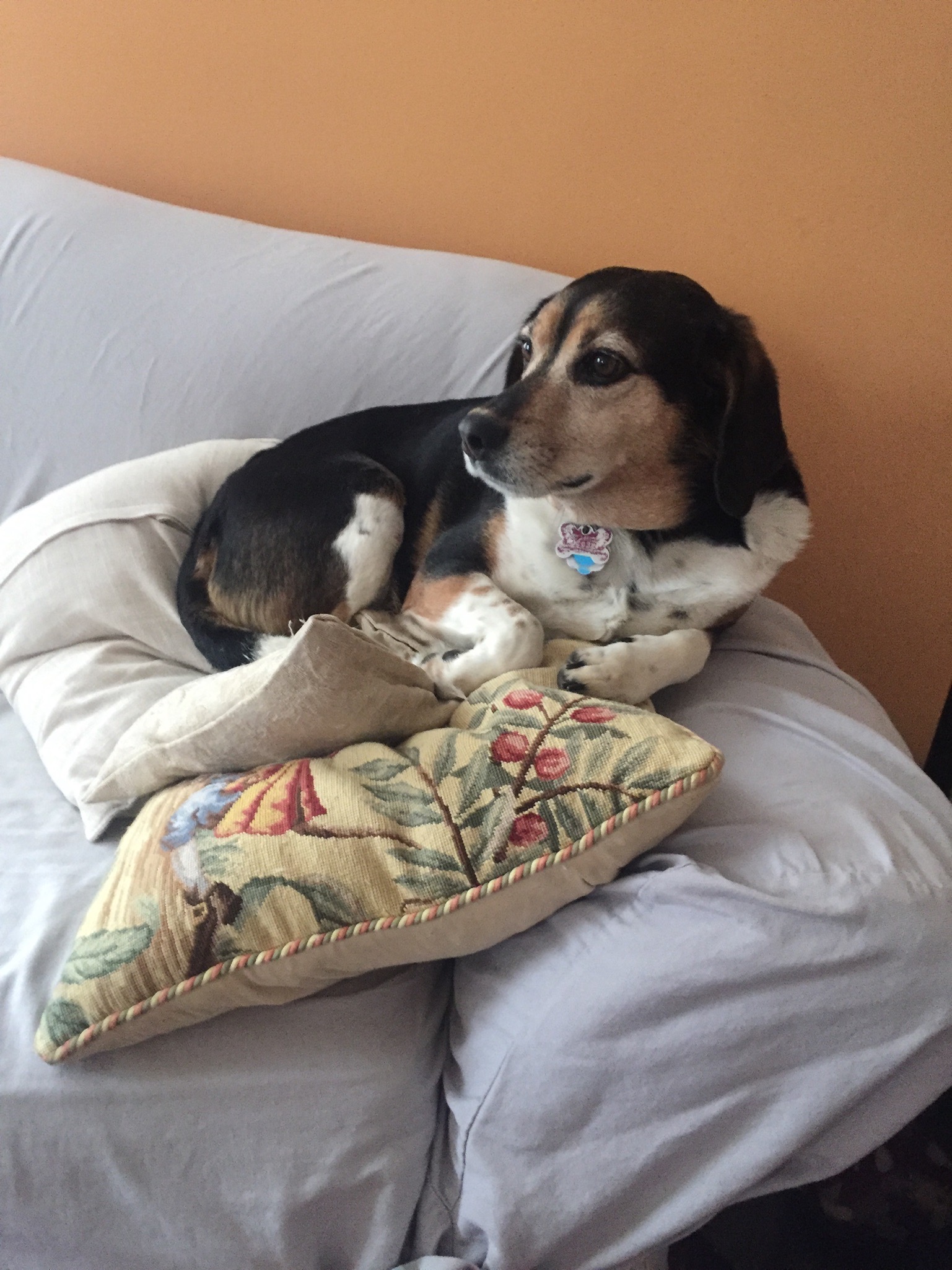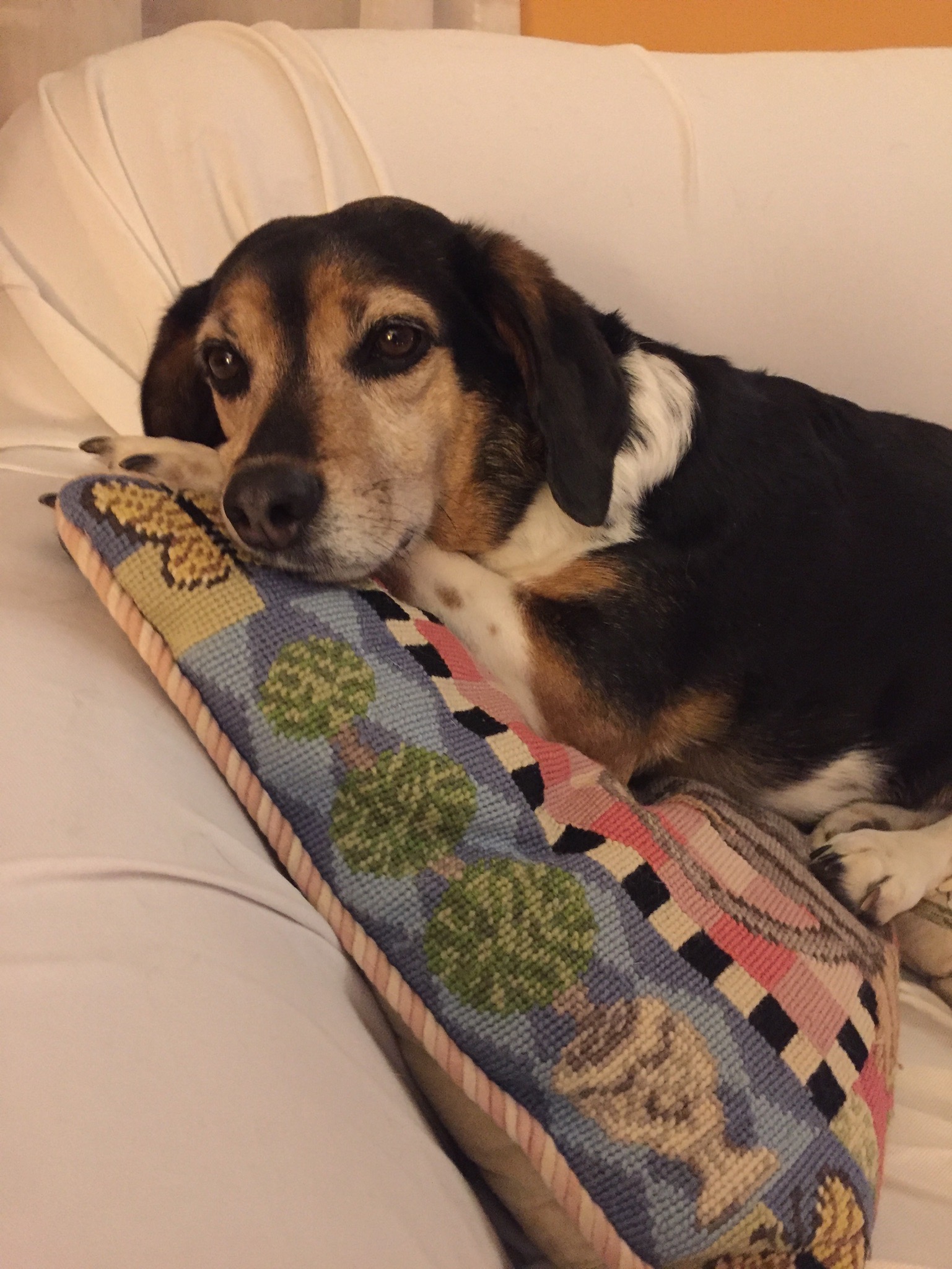 She had a long memory – she could hold a grudge like no one else you’ve ever met and yet, if we ever walked by your house and you acknowledged her, she never again walked by again without saying hello. A true beagle, she could extend a walk around the block indefinitely by stopping every few inches to take the time to smell each blade of grass and ivy leaf very thoughtfully and individually, using her paw to separate one from its neighbors.