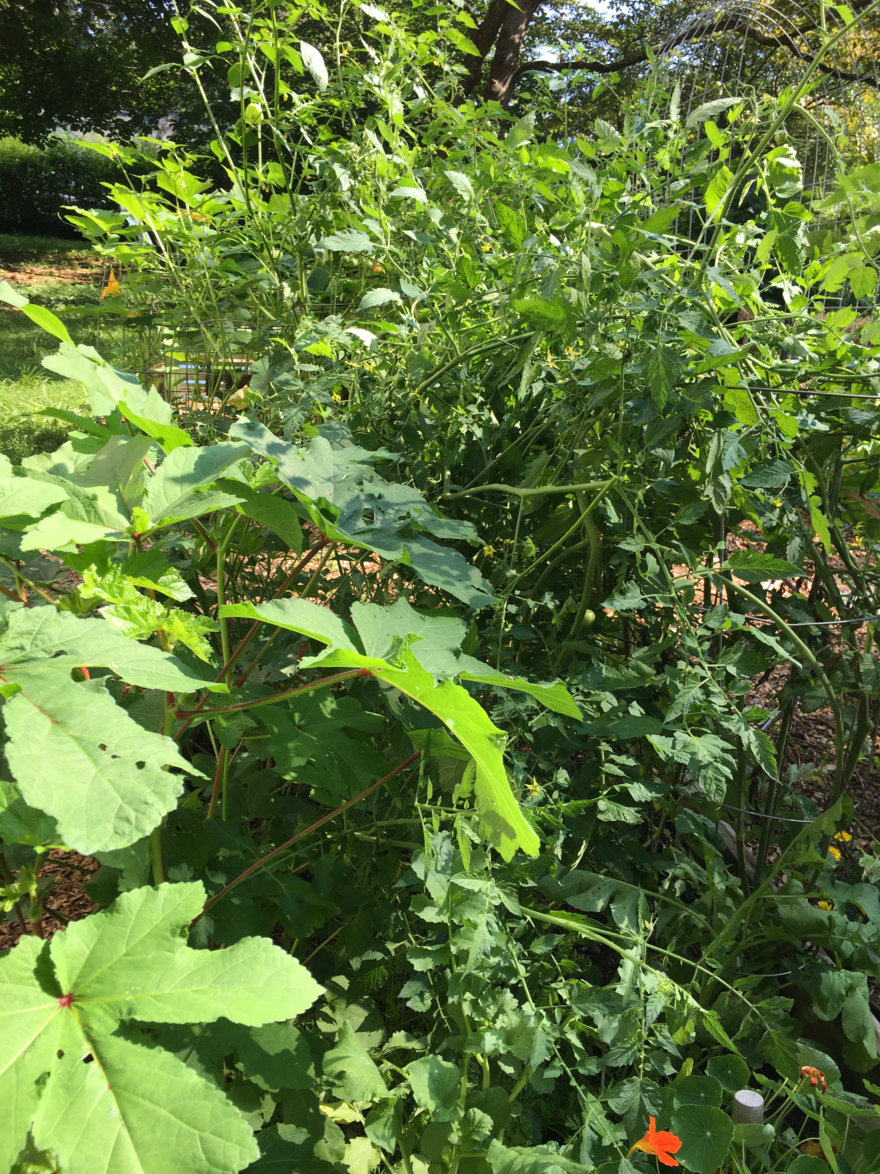 My okra is actually pretty short this year (it’s getting overshadowed by the cherry tomatoes) but it’s producing, so that’s really all that matters. And thank you.