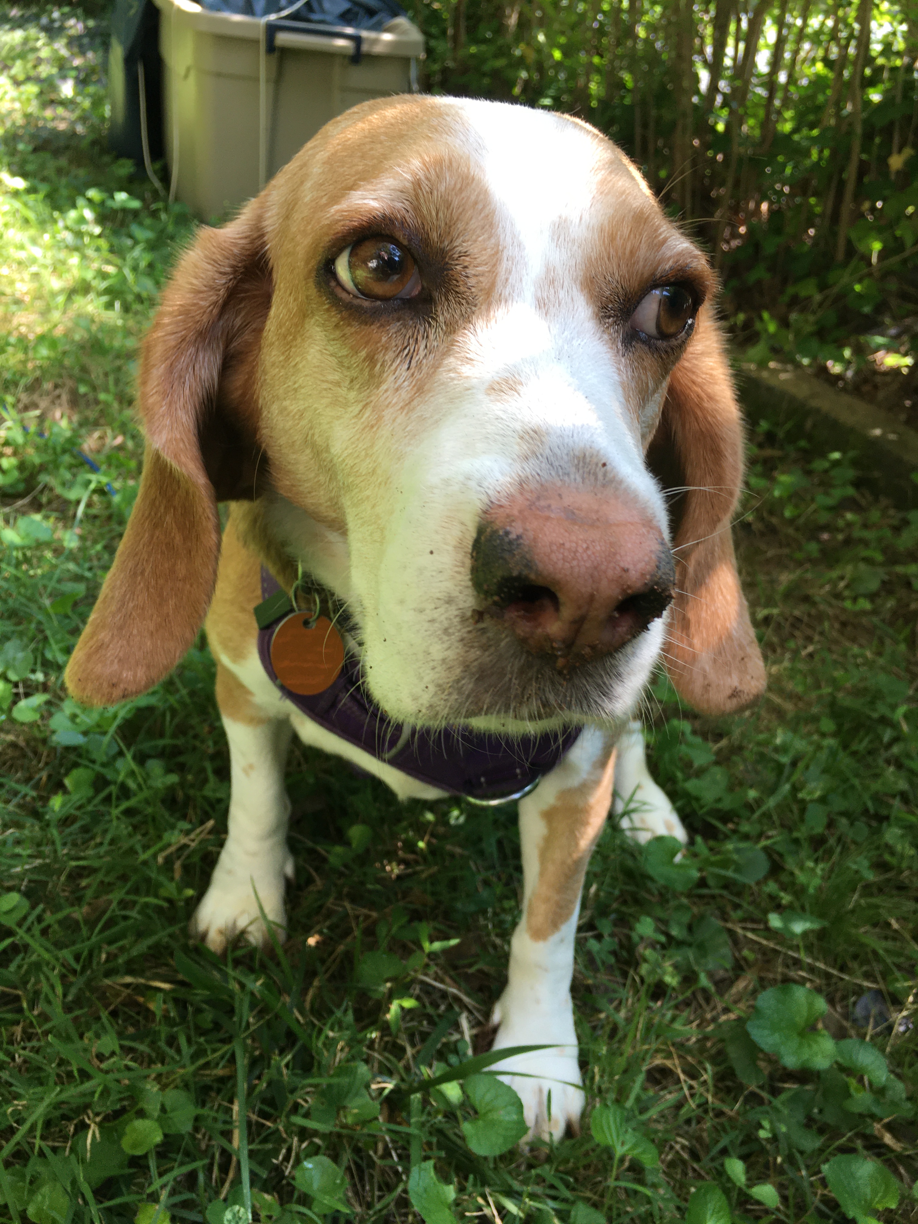The tomatoes are spilling over the okra – I caged them instead of building a support for them to climb this year, which in hindsight was probably a lazy mistake. Thankfully, the okra don’t seem to mind as I recently discovered we are now at the point of the season where the okra needs to be checked twice a day. I went with just a few cherry tomatoes this year, tired of losing my big beautiful heirloom tomatoes to the squirrels. Daisy Mae is an excellent companion, but her world view that every living creature is her friend is particularly hazardous to my garden. She has yet to find her voice – given how hounds can bay, I’m not particularly sad about it, but I do wish she could terrorize the squirrels just enough to stay away from my tomatoes. Sigh.