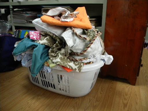That is the ironing/mending/unfinished project pile taking up a big portion of the happy corner. I had every intention of working on that pile this weekend and instead I went shopping, hung out with Betty and was in bed on a Saturday night by 8:15. Today, while having a Princess Diaries marathon, I did manage to pull something off that pile and fix it. A pair of Edie’s tights. So there. I did work on it this weekend. I’ll try to make it my goal to knock it out this week. It feels overly ambitious, but it’s also a good idea. If I can knock that out, I can start on other projects and have a little more room to work with. Betty says that one should be organized if one is going to have a good space to work in.
